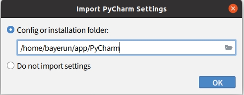 すると、こんな画面が出てくるはず。PyCharmの設定ファイルの指定有無を聞いてくるので、好きなフォルダを指定してください。※そのまま”Do not import settings”を選択してOKを押しても大丈夫です