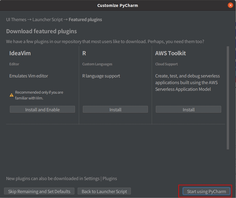 PyCharmの起動画面まできたらインストールは完了です。